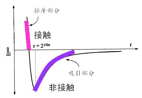 圖1、原子與原子之間的交互作用力因為彼此之間的距離的不同而不同,其之間的能量表示也會不同。 |
