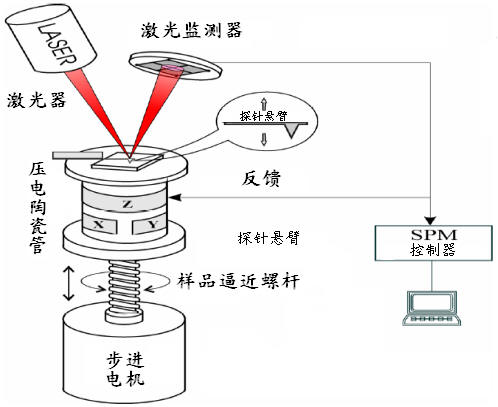 在原子力顯微鏡(AFM)的系統中,將信號經由激光檢測器取入之后,在反饋系統中會將此信號當作反饋信號,作為內部的調整信號,并驅使通常由壓電陶瓷管制作的掃描器做適當的移動,以保持樣品與針尖保持合適的作用力。
