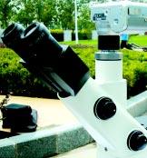 觀察筒 鉸鏈式觀察筒,在調節(jié)瞳距時,無需筒長補償。45°傾斜筒 ,舒適美觀。 穩(wěn)固的三目鏡,為采集提供了記錄圖像所需的垂直沒光學接口。只需輕輕輕地轉動光路旋扭,即可將80%的光強的圖像從接口輸出。此時還有20%光強的圖像用于觀察,而且同步性很好。 目鏡 WF10X目鏡的標準視場數為22mm。超大的視野使搜索更迅速,觀察更簡單。視度可調,保證系統(tǒng)齊焦。高眼點設計使觀察時無須摘下眼鏡。可安裝測量和計算用的各種測微以身尺。目鏡插入目鏡筒為無間隙配合,保證了光學精度,使雙目非常舒適,每個目鏡都配有可翻疊橡膠眼罩,既可有效地防止外界光線的干擾,也可有效地防止眼鏡片的磨損。