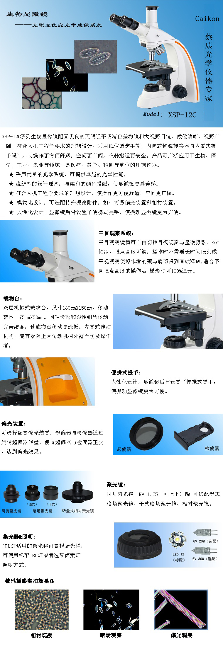 一、生物顯微鏡XSP-12C儀器的主要用途和特點: