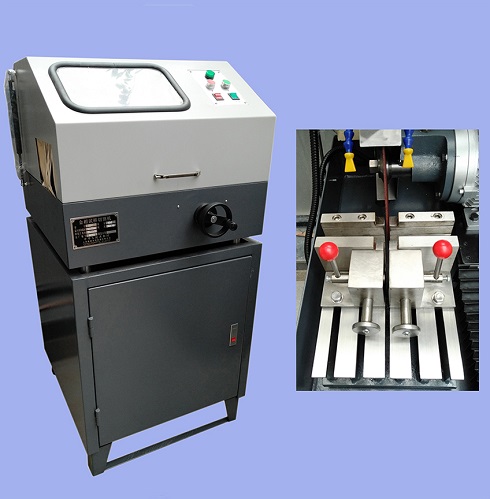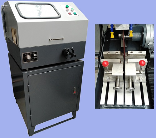 該機裝置有前、后、左、右拖板試樣的厚薄可任意調整,進給速度可操控。為避免在切割中因過熱而燒傷試樣材料的組織,該機配有強冷卻系統,并在切割時試樣可任意轉位,可避免試樣在切落時表面的微燒傷,可增大切割截面,提高切割砂輪片的利用率,具有操作使用來維護保養方面燈優點,是切割不規則試樣材料的設備。