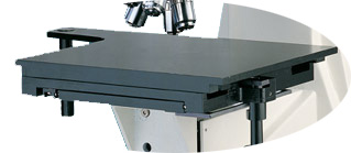 物臺上方的空間,使對標(biāo)本操作變得更方便、快捷,同時,載物臺在X軸的移動也更加平滑和精密。載物臺表面光滑,使載玻片能夠更平滑、自如地移動。 |